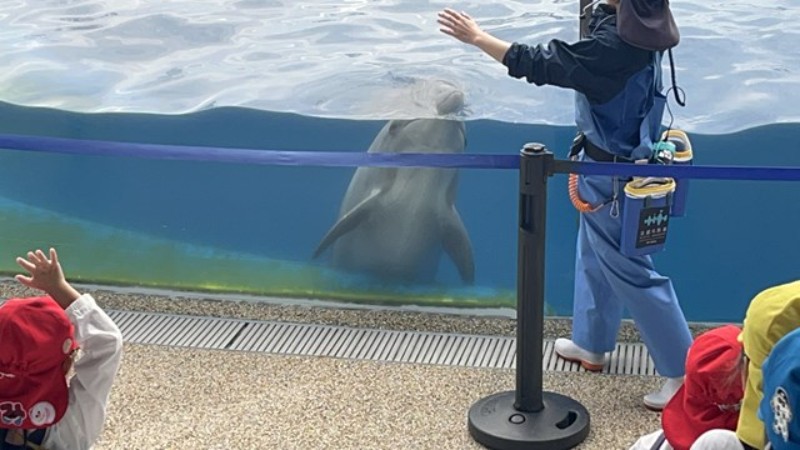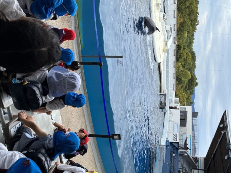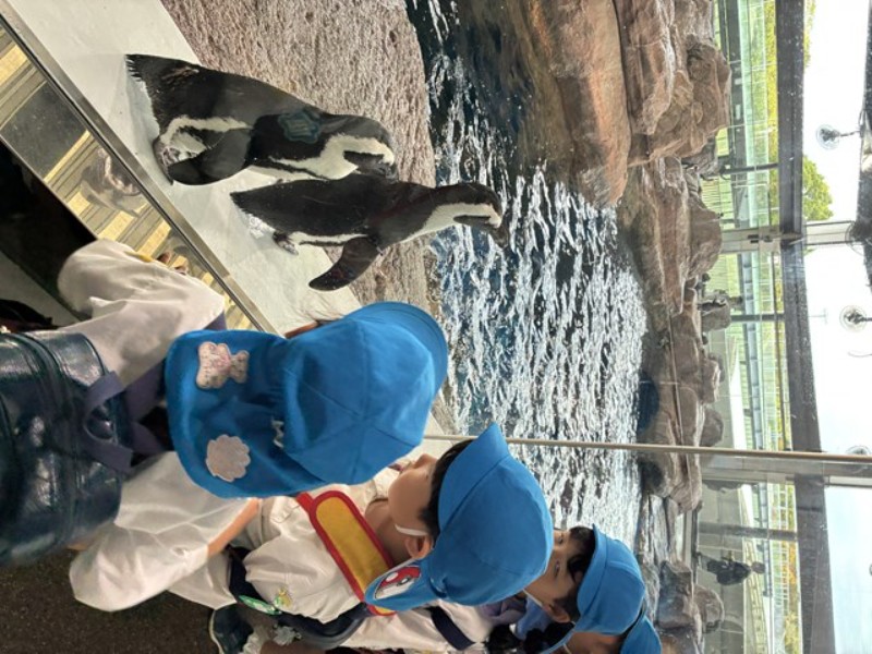 年長児が京都鉄道博物館・京都水族館へ遠足へ出かけました。実は水族館は当日にサプライズとして園児にお知らせしました。大喜びの子どもたちは、各クラスで館内を散策して楽しいひとときを過ごしました。大きなSLに乗ったり、かわいいイルカを見て大満足の一日となりました♪美味しいお弁当やおやつをいただきながら、「これは昨日買いに行ったんだ」や「これ見て!ママが作ってくれた!」と嬉しそうに見せてくれました。