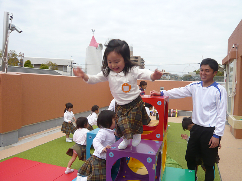 岸部敬愛保育園・マーヤ敬愛保育園・山田敬愛幼稚園と同じ保育内容を実践しております(英語は除く)。幼稚園・保育園の先生が相互に連携し、互いの保育力を高める不断の努力を続けております。