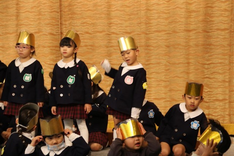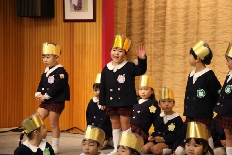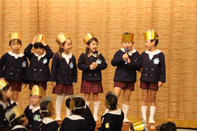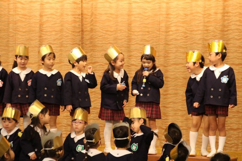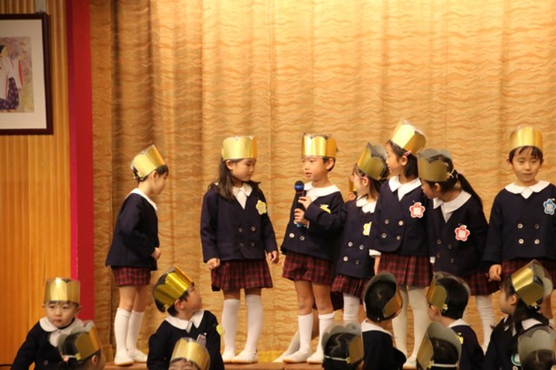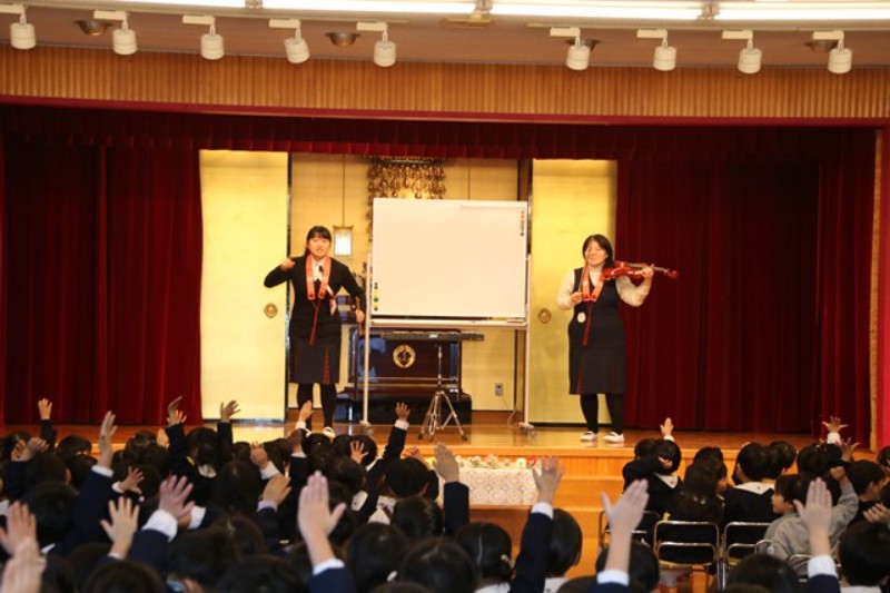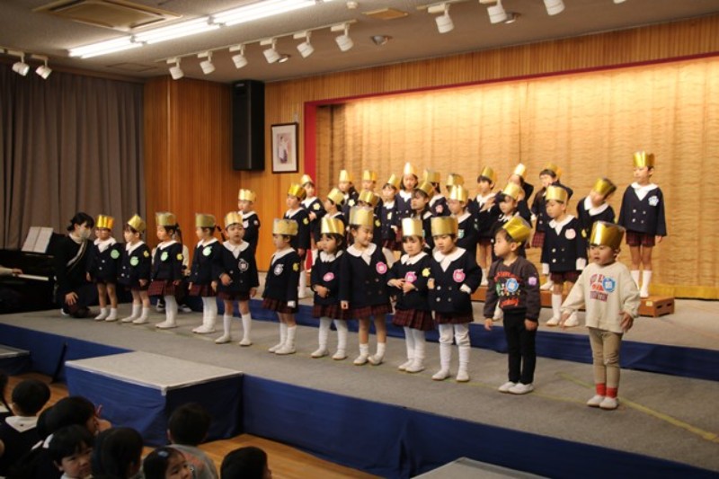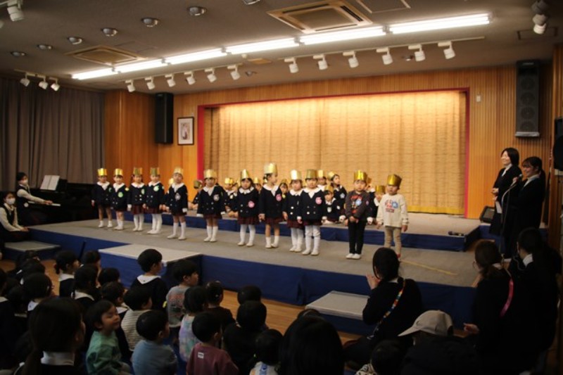 園長先生からは、ののさまがいつも見守ってくださっていること、先生たちからは、楽器の生演奏がありました。生活発表会をひかえたみんなに向けて、音を奏でる楽しさ、合わせることの楽しさを実演してみせてくれました。