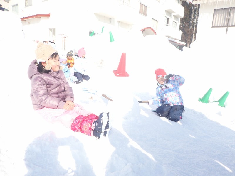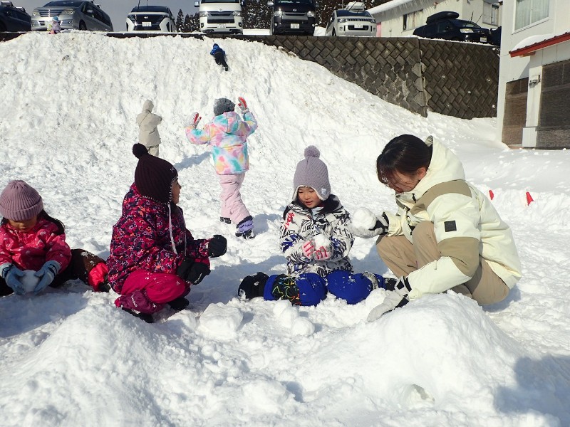 年長が卒園記念旅行で、雪遊びに出かけました!身支度から、着替え、お風呂の用意など全て自分たちで頑張りました。(分かりやすく荷造り準備していただいたご家族の皆様には本当に感謝いたします♪)寒波がきたこともあり、ゲレンデにはふかふかの新雪がたっぷりあり、思う存分ソリ遊びや、かまくら作り、雪合戦を楽しみました。宿舎でも先生やクラスのお友だちとビンゴやゲーム、さらにご厚意でお餅つきまで!楽しすぎる2日間を過ごしました^^みんなの心にいつまでもいつまでも、残る思い出となれば嬉しいです♪