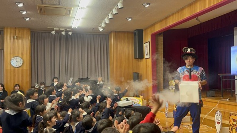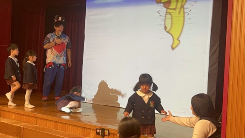 2月生まれ、3月生まれさんのお誕生日会を行いました!今日の主役は23人です。はじめに仏参を行い、参加してくださった保護者の方と一緒にお祝いを行いました。そして、本日のお楽しみはアキラボーイさんによる映像を使ったショーでした★プロジェクターの中の動画と、アキラボーイさんの動きがリンクして、とっても盛り上がりました♪主役のみんなにはショーのお手伝いもしてもらいましたよ♪