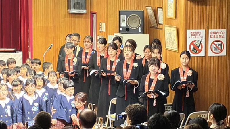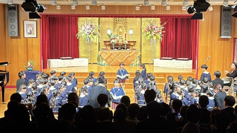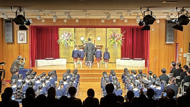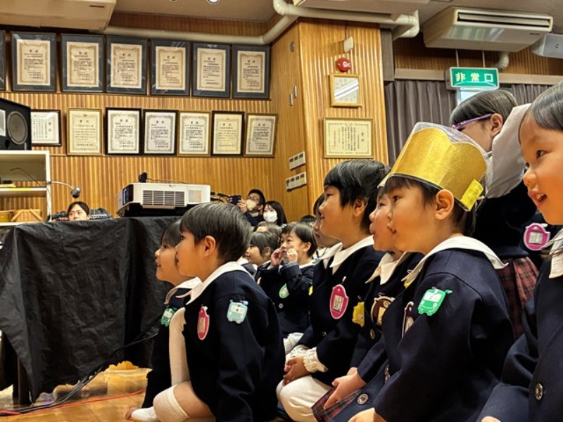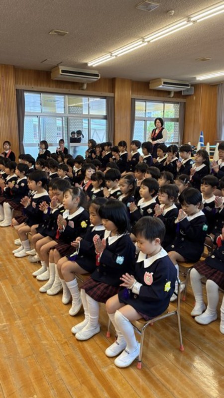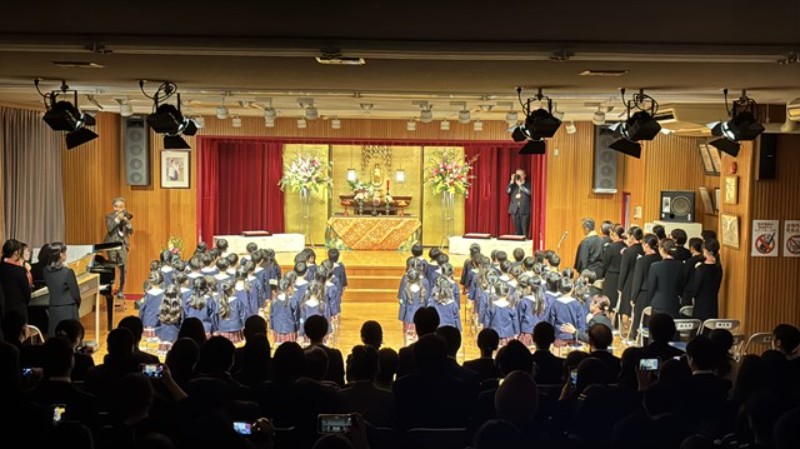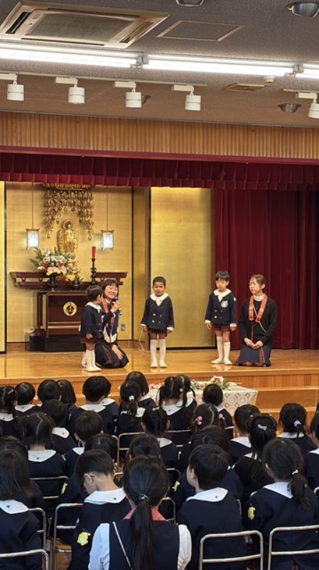 令和7年度の保育発表会を行いました。ぴりっとした緊張感の中、ステージでのびのびとした歌唱や、きらきらとしたお話あそびの世界をみせてくれました。また、年長組は本園独自の〈総合音楽〉を披露しました。山田敬愛幼稚園での保育の集大成といえる発表に、胸が熱くなりました。
